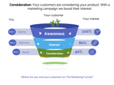 Each Revcurv step takes you and your customers further through The Marketing Funnel.